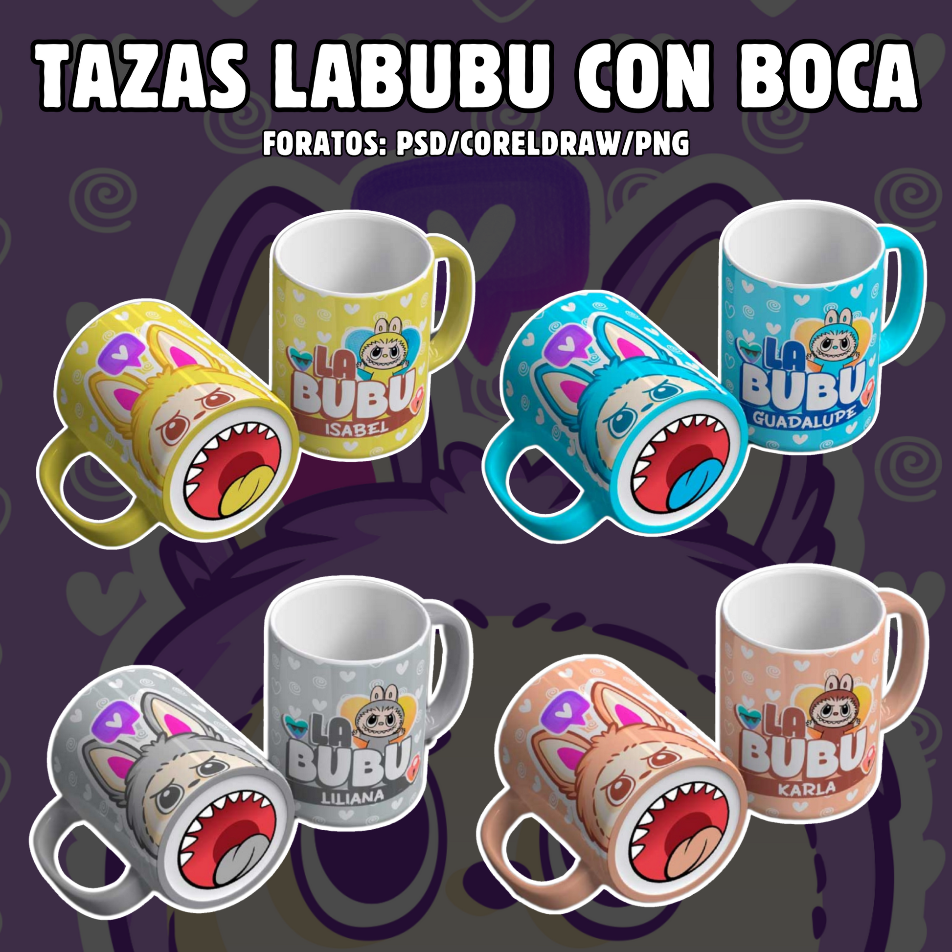 DISEÑOS LABUBU CON BOCA PARA TAZAS